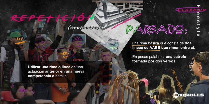 Recordando prácticas nacionales como lo son la trova antioqueña, la piquería vallenata o el contrapunteo llanero, pero preservando características propias de la cultura hip-hop, de esta forma reúne adeptos que a través de la música buscan representar su realidad social, económica y cultural utilizándose como recursos o insumos artísticos en sus batallas.